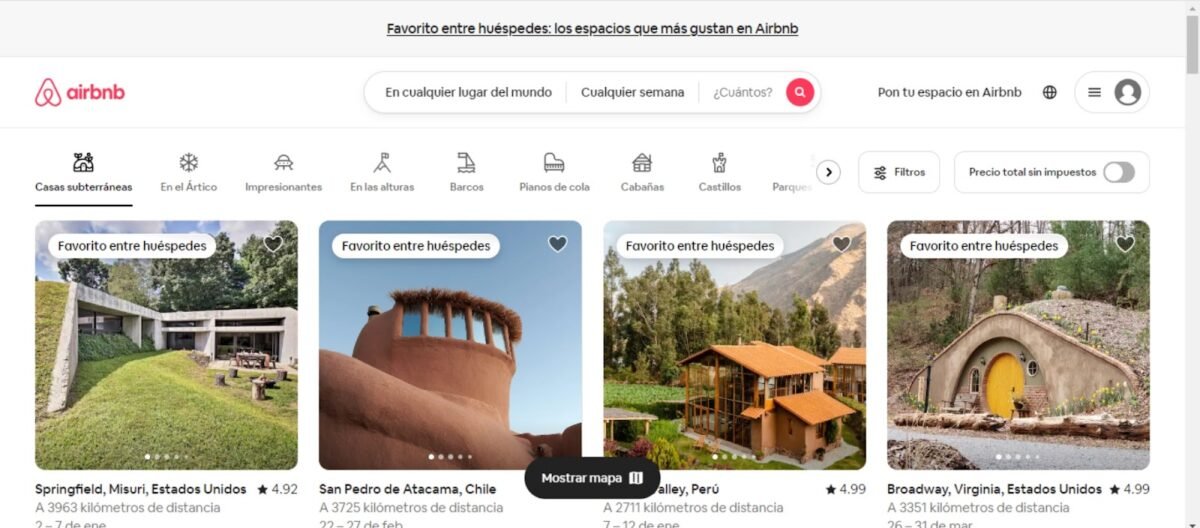 Este sitio web, utilizado en más de 200 países, se especializa en la oferta de alojamientos particulares y turísticos, donde los anfitriones pueden publicar sus residencias en alquiler y conseguir clientes.