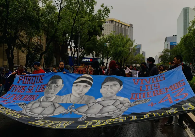 Fuente: https://contralinea.com.mx/cronica/ayotzinapa-vive-la-lucha-sigue-sigue-sigue/