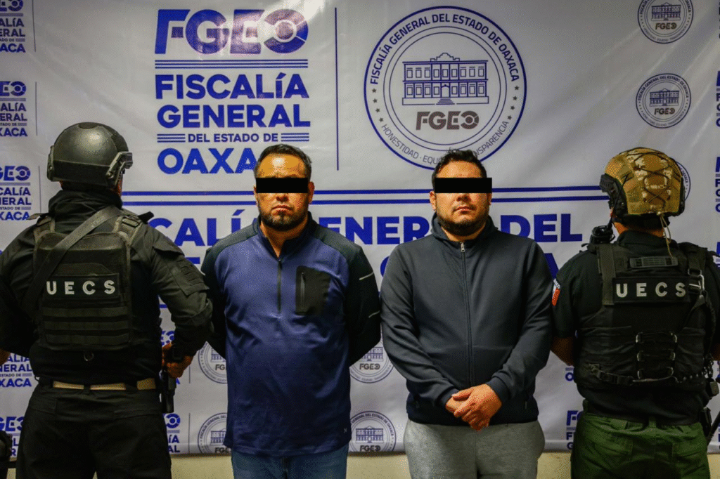 Oaxaca de Juárez, Oax., 26 de febrero de 2026.-La Fiscalía General del Estado de Oaxaca (FGEO) llevó a cabo la aprehensión de dos personas del sexo masculino, identificados por las iniciales D.D.C.F. -capturado en Nuevo León- y A.P.T., por delito de fraude cometido por trabajadores de la agencia de automóviles Chevrolet MEGA Oaxaca S.A. de C.V.