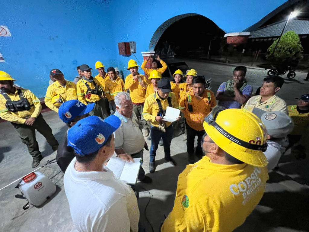 La dependencia sostuvo, este martes 24 de febrero, una reunión con autoridades municipales y comunales para organizar la estrategia de combate por lo que se efectuó un sobrevuelo con dron, con el objetivo de evaluar los frentes activos y definir la distribución de brigadas.