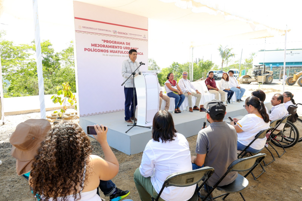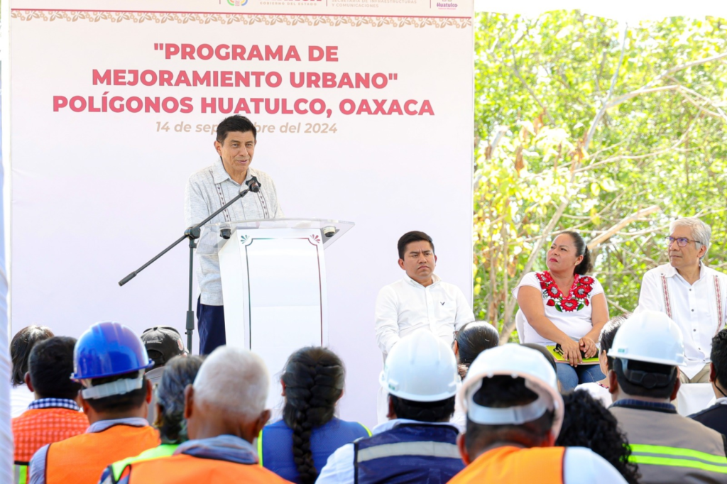 Santa María Huatulco, Oax. 14 de septiembre de 2024.- Con un enfoque social y humanista el gobierno de la Cuarta Transformación que encabeza el Presidente Andrés Manuel López Obrador hizo realidad que más de 2 mil 700 familias de Santa Cruz Huatulco, cuenten ya con certeza jurídica en sus viviendas, expresó el Gobernador Salomón Jara Cruz durante la inauguración de las obras del programa de Mejoramiento Urbano, Polígonos Huatulco.