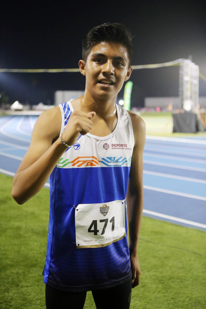Oaxaca de Juárez, Oax. 08 de junio de 2024. El atleta oaxaqueño Zarek Elías García consiguió el oro para Oaxaca en los Nacionales de la Comisión Nacional de Cultura Física y Deporte (Conade) 2024, en la prueba 2 mil metros planos varonil Sub-16.