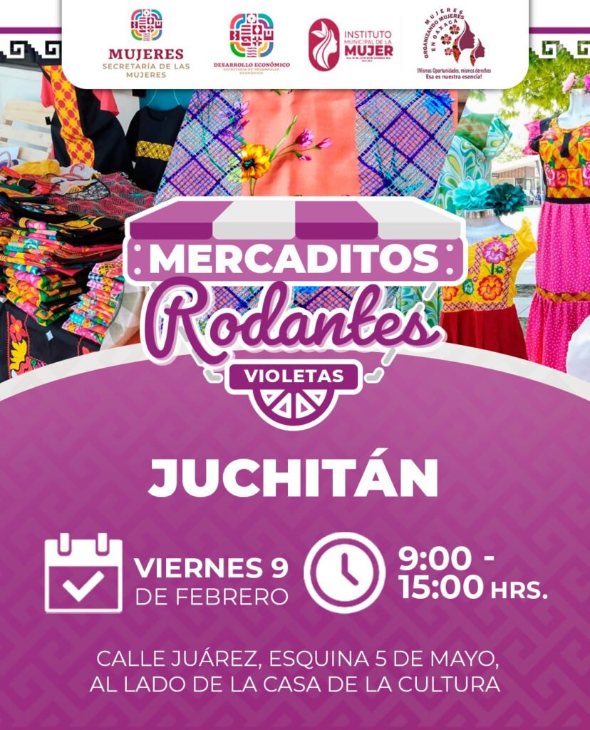 Convocada por la Secretaría de las Mujeres, esta actividad se realizará el viernes 9 de febrero de 9:00 a 15:00 horas, en la calle Benito Juárez esquina con 5 de Mayo, a un costado de la Casa de Cultura de Juchitán de Zaragoza.