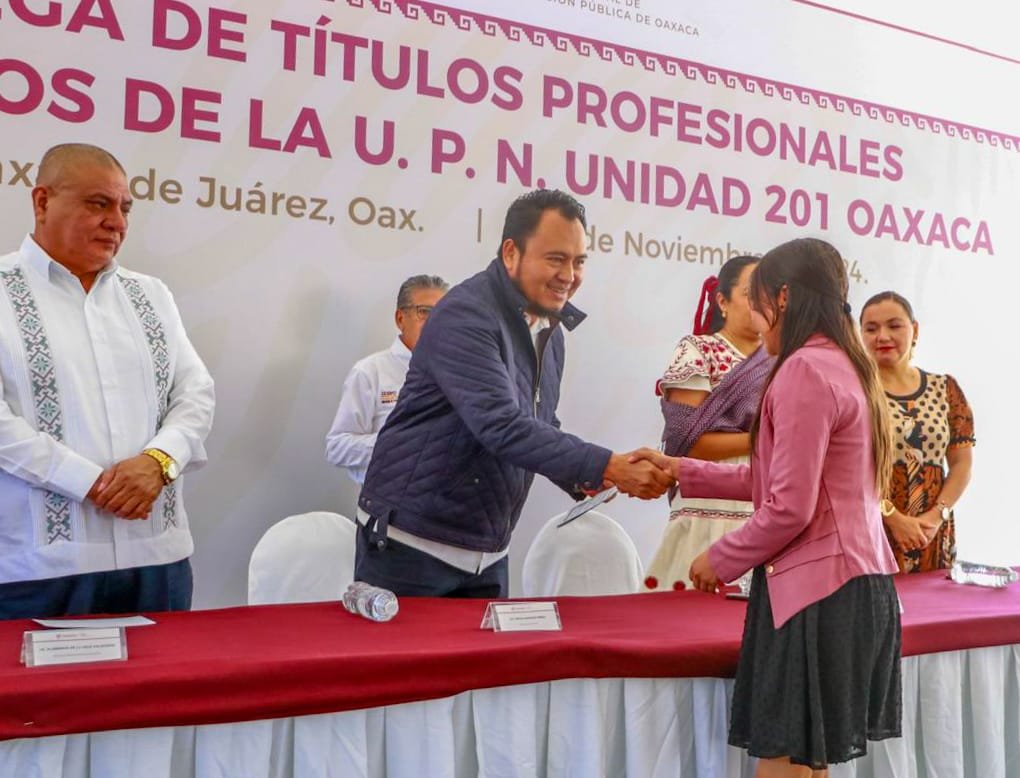Indicó que como nunca antes se avanza en la atención al rezago administrativo, en algunos casos con la entrega de títulos de generaciones del año 1997 hasta el 2023, así como a docentes que ya se encuentran en servicio; esto como resultado del trabajo conjunto, la nueva relación con el magisterio oaxaqueño y de las gestiones ante las instancias correspondientes.