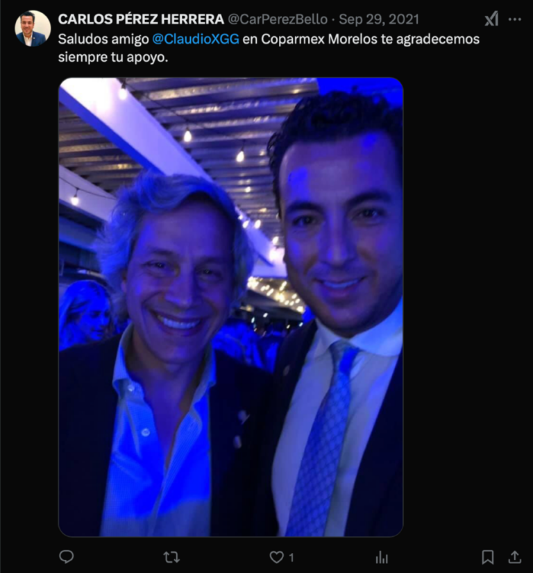 Publicación de Carlos Pérez Herrera con su “amigo” Claudio X. González en septiembre de 2021, cuando su asociación “Sí por México” hacía un llamado a no participar en el proceso de revocación de mandato que promulgó el presidente López Obrador.