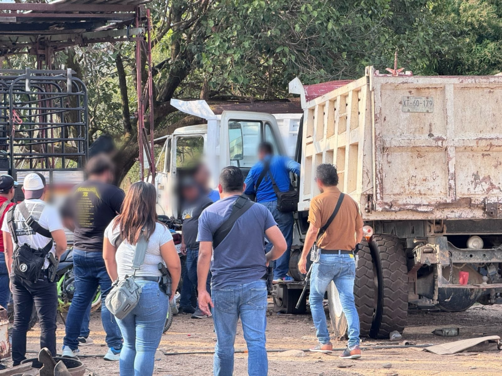 Durante el operativo policial que estuvo a cargo de la Vicefiscalía Regional del Costa, los agentes de investigación lograron el aseguramiento de un camión tipo volteo con placas del estado de Veracruz, que podría estar relacionado con el delito de homicidio culposo en agravio de J. C.R.R.