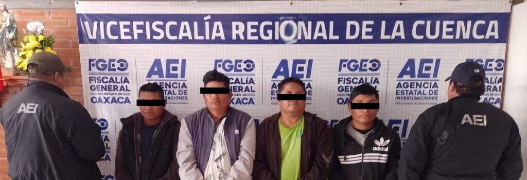 Oaxaca de Juárez a 29 de enero de 2025.- La Fiscalía General del Estado de Oaxaca (FGEO), en colaboración interinstitucional con la Fiscalía de Veracruz, ejecutaron una orden de aprehensión que permitió la detención de cuatro personas del sexo masculino identificadas como S.R.R., M.R.R., A.R.R. y O.R.R., por el delito de Homicidio Calificado con las agravantes de Premeditación, Alevosía y Ventaja en agravio de ocho personas, hechos ocurridos en la región de la Cuenca del Papaloapan.