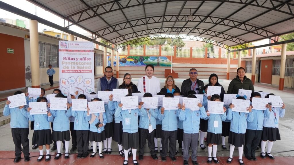 Esta actividad se llevó a cabo para motivar a la población infantil a proteger su salud en esta temporada de invierno, con la participación de las y los estudiantes de segundo grado de la Escuela Primaria “Margarita Maza de Juárez” de este municipio, como parte de la estrategia de Fomento a la Lectura y Niñas y niños promotores de la salud.