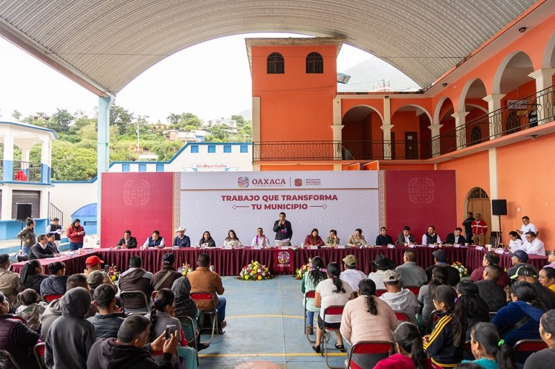 Durante su visita a San Miguel Coatlán, el Mandatario estatal afirmó el compromiso de su gobierno para resarcir el lugar 175 que esta localidad ocupa a nivel estatal por los bajos índices de desarrollo, y en el 287 a nivel nacional.