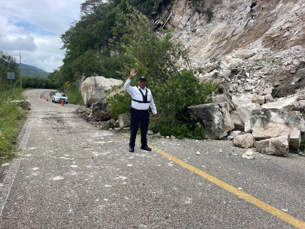 • La Policía Vial Estatal informó que se registró un derrumbe en el kilómetro 59+200, a la altura del paraje el Clarín