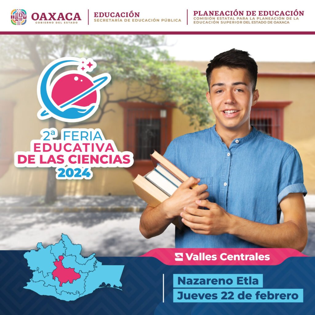 Oaxaca de Juárez, Oax. 19 de febrero 2024. La Comisión Estatal para la Planeación de la Educación Superior (Coepes), invita a la Segunda Feria Educativa de las Ciencias 2024 que tiene la finalidad de incentivar en la juventud la continuación sus estudios a nivel licenciatura.