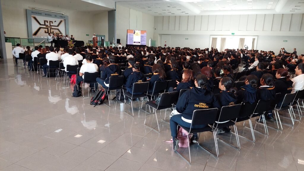 Oaxaca de Juárez, Oax. 8 de febrero de 2024.- Como parte del proceso de certificación de Escuela Promotora de la Salud, los Servicios de Salud de Oaxaca (SSO) a través de la Jurisdicción Sanitaria número 1 Valles Centrales, capacitó a 500 personas docentes, administrativas, directivas y estudiantes del bachillerato y de la facultad de Enfermería de la Universidad Regional del Sureste (URSE).