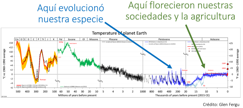 Figura 1: El Holoceno, la época geológica en donde florecieron nuestras sociedades, comenzó hace aproximadamente 11 mil 700 años. Ahora estamos en un periodo de cambio global acelerado producto de las actividades humanas, por ello, hay quienes proponen la idea de una nueva época: ‘Antropoceno’, otros proponen ‘Capitaloceno’.