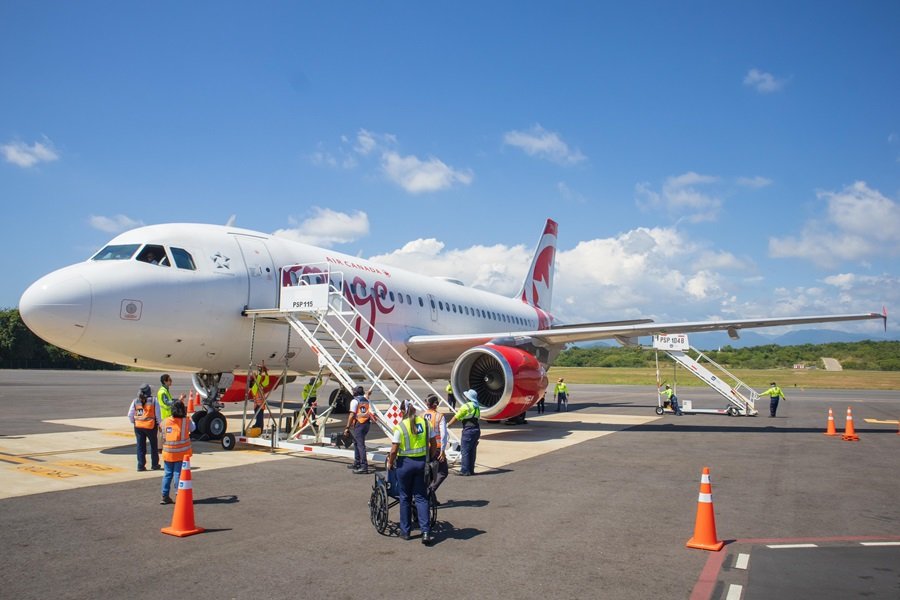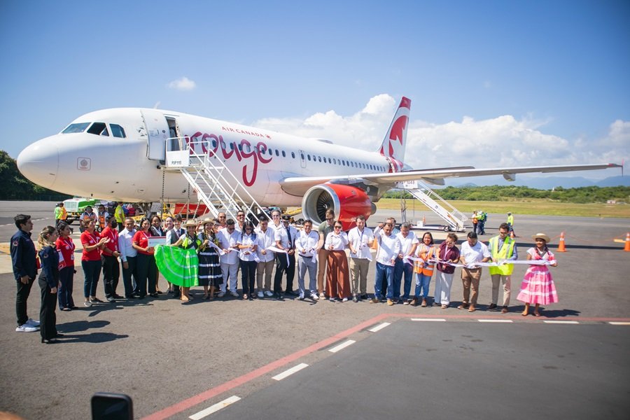 Oaxaca de Juárez, Oax. 28 de octubre de 2024.- Con un equipo A-319 con capacidad para 138 personas pasajeras, este fin de semana llegó el primer vuelo de Air Canadá procedente de Toronto, Canadá, al Aeropuerto Internacional de Santa María Huatulco, informó la Secretaría de Turismo (Sectur).