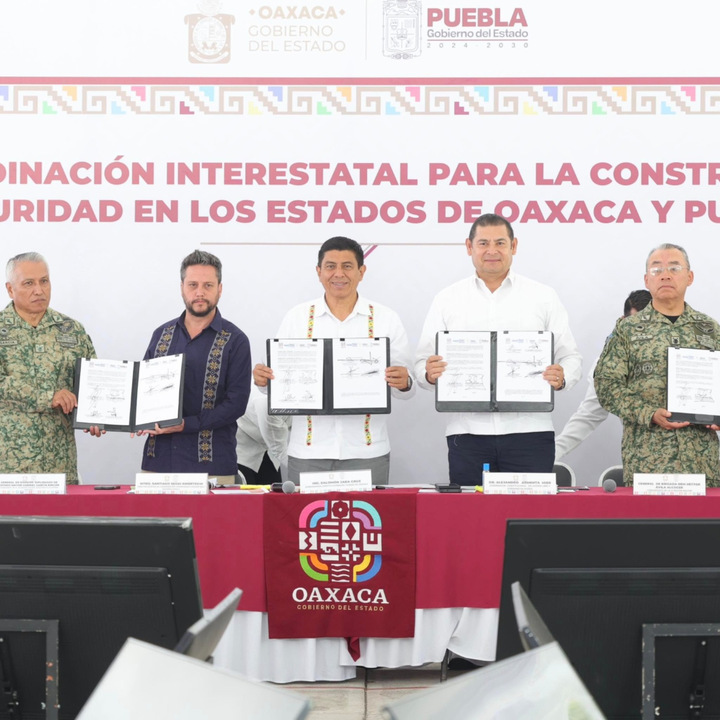 • Los Gobernadores Salomón Jara y Alejandro Armenta firmaron el Convenio Marco de Coordinación y Colaboración Intergubernamental de Acciones en Materia de Seguridad
