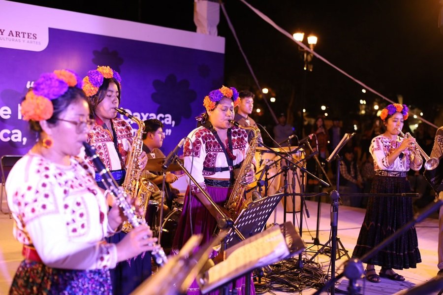La Banda Regional Mixe brindó el concierto “Un canto hacia la eternidad”, para compartir a través de sus notas musicales cómo se concibe la muerte y se realizan los rituales de despedida en la cultura Ayuuk. Fue dirigida por el maestro Leovigildo Martínez e integrada por 16 músicos, que muestran la riqueza artística de la región.