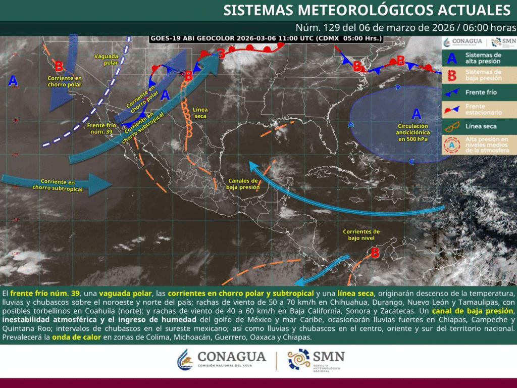 Lo anterior se debe a la presencia de un débil canal de baja presión sobre el sureste de México, en combinación con el ingreso de humedad proveniente del océano Pacífico y el Golfo de México.