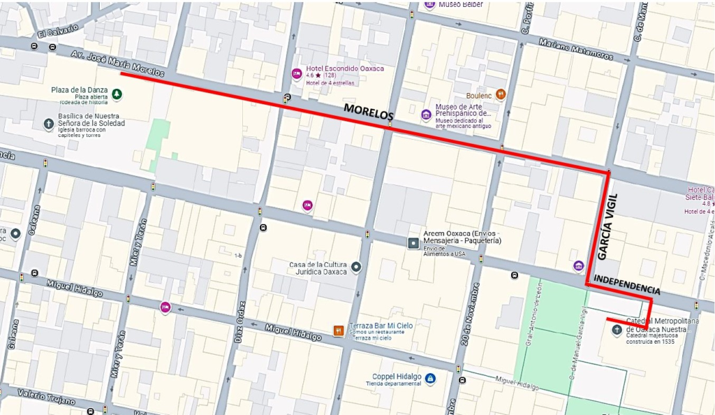 Esta actividad, única en todo el país, iniciará a partir de las 22:15 horas desde avenida Independencia esquina con la calle Mier y Terán, avanzará hasta llegar a la calle Doctor Aurelio Valdivieso, para integrarse al Portal de Clavería y recorrer los portales Las Flores, del Palacio y Mercaderes, para terminar en la esquina de las calles Miguel Hidalgo y Doctor Aurelio Valdivieso.