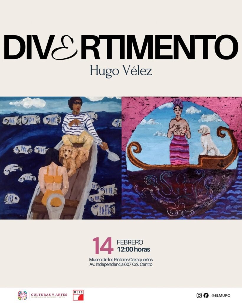Oaxaca de Juárez, Oax. 13 de febrero de 2026.- La Secretaría de las Culturas y Artes (Seculta), a través del Museo de los Pintores Oaxaqueños (Mupo), invita a la inauguración de la exposición «Divertimentos» del artista Hugo Vélez, que se realizará este sábado 14 de febrero, a las 12:00 horas.