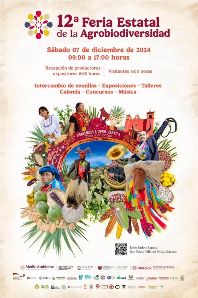 Oaxaca de Juárez, Oax. 28 de noviembre de 2024.- En cumplimiento a la promoción de la riqueza cultural, agroalimentaria y la valoración de las semillas nativas que son base en la alimentación, se realizará la edición 12 de Feria Estatal de la Agrobiodiversidad el próximo 7 de diciembre en el Ejido Unión Zapata, perteneciente al municipio de San Pablo Villa de Mitla.