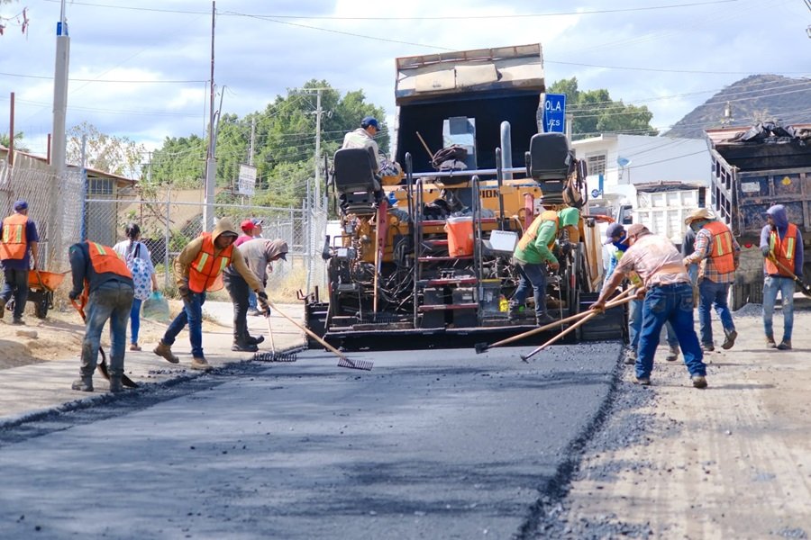 • Se pavimentó con concreto hidráulico la calle Francisco Zarco y se avanza en la carretera a San Antonio Arrazola, en beneficio de agencias y colonias