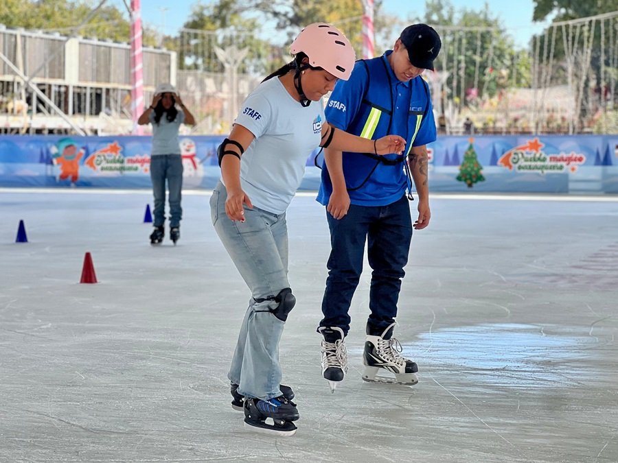 Oaxaca de Juárez, Oax., 10 de diciembre de 2024.- El Sistema para el Desarrollo Integral de la Familia (DIF) Oaxaca informa que la pista de hielo instalada en el Festival Navideño del Parque Primavera Oaxaqueña Cho Ndobá está abierta al público en un horario de 12:00 a 22:00 horas.